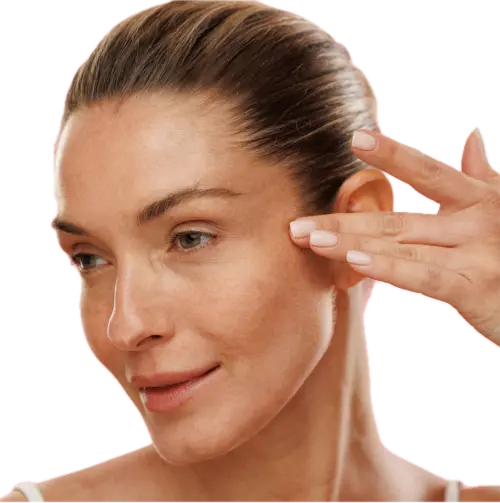Appliquez une noisette de crème hydratante sur la zone sous les yeux. Massez doucement avec le bout de vos doigts en effectuant des mouvements en virgule, de l’intérieur vers l’extérieur du visage. Cette technique aide à lisser la peau, à réduire les poches et à prolonger l'hydratation, pour un regard plus lumineux et reposé.