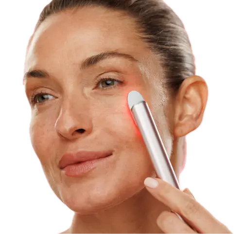 Prenez le stylo de soin et massez la zone sous les yeux pendant 5 minutes. Ce massage ciblé, réalisé à l'aide du stylo, favorise la microcirculation et l'absorption des actifs, tout en réduisant visiblement les cernes et les poches.